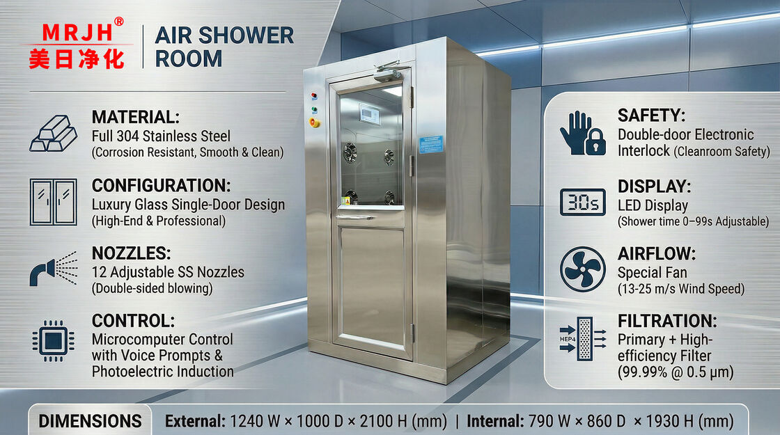 Воздушный душ - это система дезактивации персонала, предназначенная для входа/выхода из чистых помещений, обеспечивающая соответствие стандартам ISO 14644-1.электроники, и биомедицинских исследований, он интегрируетконструкция из нержавеющей стали 304,однодверные двери с стеклянным окном, идвойной воздушный душ с 36 регулируемыми отверстиями из нержавеющей сталидля быстрого удаления твердых частиц, оборудованная системой управления микрокомпьютером, электронным двухдверным блокировкой, итройная фильтрация (3 предварительных фильтра + 3 HEPA фильтра), обеспечивает бесзаразовую работу сСкорость ветра от сопла 1325 м/сиОбщее потребление энергии < 4,5 кВт.